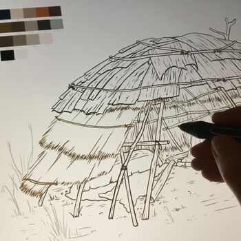 Die Rekonstruktionen können in Farbe und Stil ganz nach Ihren Wünschen illustriert werden – ob als Bleistift-, Aquarell- oder Strichzeichnung, schwarz-weiß, monochrom oder mehrfarbig.