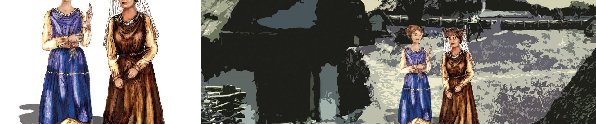 Die Trachtsitten der weiblichen Bewohner der langobardischen Siedlung (2. Jh. n. Chr.) wurden anhand von bekannten Körpergräbern, Moorfunden und Fundobjekten aus Hitzacker-Marwedel rekonstruiert.